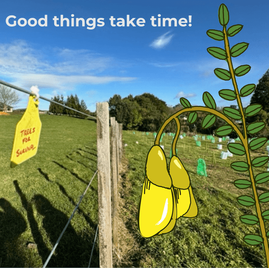 We are all aware of the long term benefits of planting native plants such as the creation of ecological corridors and filtering of nutrients into waterways, so it was pretty special that at this year’s planting day, Ararimu school students had kowhai and totara trees to plant amongst the other native plants they’d nurtured at the school. The Kowhai and Totara had been grown from seed by one of the students grandmothers whose nearby property was the site of Trees for Survival planting 25 years ago! Just another reminder that tree planting is all about long term vision and rewards in the future!